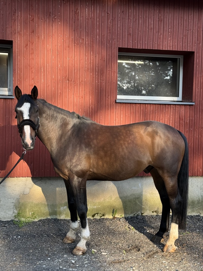 Calm and reliable gelding with competition experience — has jumped up to 95 cm in shows in Estonia and previously up to 120 cm. At home, he has comfortably jumped up to 130 cm. Confident and well-behaved in unfamiliar environments; acts like he's at home wherever he goes. Easy to handle for the farrier, vet, and during transport.